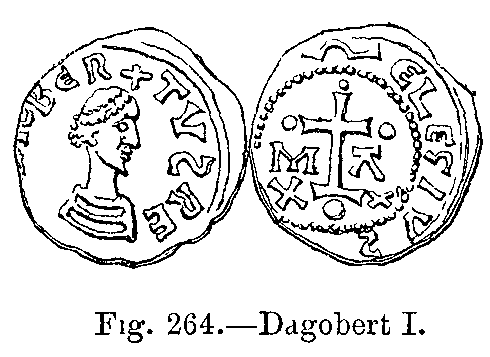 Fig. 403.--Costume of King Childebert (Seventh Century).--From a Statue formerly placed in the Refectory of the Abbey of St. Germain-des-Prés.