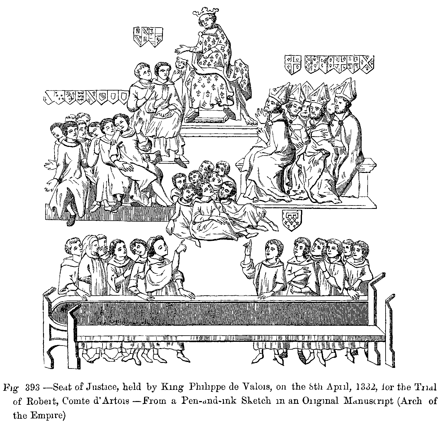 In a high order of ideas, what great facts serve as a foundation to our history and that of the modern world! We have first royalty, which, weak and debased under the Merovingians, rises and establishes itself energetically under Pépin and Charlemagne, to degenerate under Louis le Débonnaire and Charles le Chauve. After having dared a second time to found the Empire of the Caesars, it quickly sees its sovereignty replaced by feudal rights, and all its rights usurped by the nobles, and has to struggle for many centuries to recover its rights one by one.