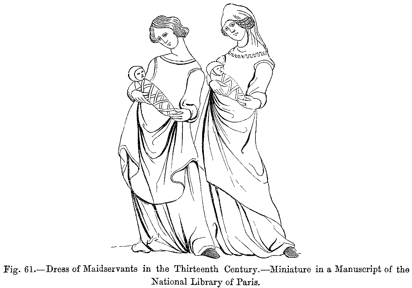 4. A Young Mother's Retinue. Miniature from a Latin "Terence" of Charles VI. Costumes of the Fourteenth Century.