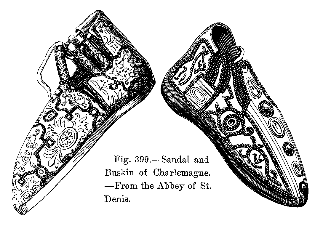Influence of Ancient Costume.--Costume in the Fifteenth Century.--Hair.--Costumes in the Time of Charlemagne.--Origin of Modern National Dress.--Head-dresses and Beards: Time of St. Louis.--Progress of Dress: Trousers, Hose, Shoes, Coats, Surcoats, Capes.--Changes in the Fashions of Shoes and Hoods.--Livrée.--Cloaks and Capes.--Edicts against Extravagant Fashions.--Female Dress: Gowns, Bonnets, Head-dresses, &c.--Disappearance of Ancient Dress.--Tight-fitting Gowns.--General Character of Dress under Francis I.--Uniformity of Dress.