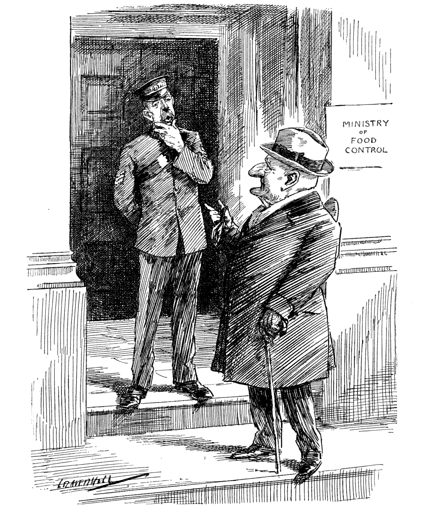 COMMISSIONAIRE. "WELL, SIR, 'CONTROL' IS PERHAPS RATHER A STRONG WORD. BUT WE GIVE HINTS TO HOUSEHOLDERS, AND WE ISSUE 'GRAVE WARNINGS.'"