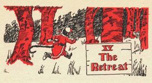 Just before he disappeared behind a high knoll Major Monkey turned his face over his shoulder and looked behind. Then, holding on with one hand, with the either he waved his red cap at Jolly Robin.