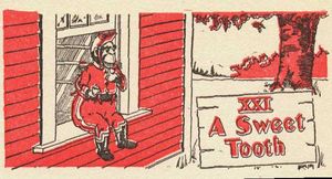 He saw nothing of the sort anywhere. But one day when he leaped to the window-sill of the henhouse he was delighted to find a lump of maple sugar, which some one had carelessly left there.