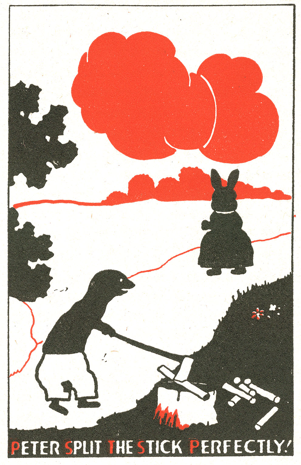 He was so out of patience that he aimed a hard blow at another stick of wood. Again, he didn't hurt the axe at all. And again he split the wood exactly as Mrs. Rabbit wanted him to. But Peter never thought of that.