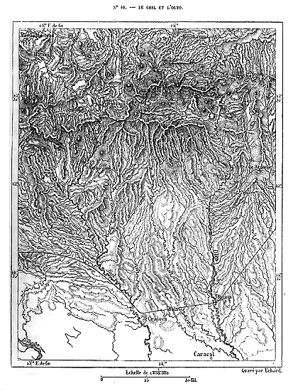 En s'étalant ainsi, le système des Alpes perd son caractère et son aspect; il n'a plus ni grands massifs, ni glaciers, ni champs de neige; au nord, il s'affaisse peu à peu vers la vallée du Danube; au sud, il se ramifie en chaînes secondaires sur le piédestal que lui fournit le plateau bombé de la Turquie. Malgré la différence extrême qu'offrent le tableau des grandes15 Alpes et les vues du Montenegro, de l'Hémus, du Rhodope, du Pinde, toutes ces arêtes montagneuses n'en appartiennent pas moins au même système orographique. Toute la péninsule thraco-hellénique doit être considérée comme une dépendance naturelle des Alpes. Il en est de même de la presqu'île d'Italie, car, dans son immense courbe, l'arête des Apennins continue parfaitement la chaîne des Alpes Maritimes, et l'on ne sait vraiment où l'on doit tracer entre les deux la ligne conventionnelle de séparation. Enfin, parmi les chaînes de montagnes qui se rattachent au système des Alpes, il faut aussi compter les Carpathes, que le travail des eaux a graduellement isolées pendant la période géologique moderne. Il est indubitable qu'autrefois l'hémicycle de montagnes formé par les Petits Carpathes, les Beskides, le Tatra, les Grands Carpathes et les Alpes transylvaines s'unissait d'un côté aux Alpes d'Autriche, de l'autre aux contre-forts des Balkhans. Le Danube s'est ouvert deux portes à travers ces remparts; mais ces portes sont étroites, semées de roches, dominées par de hautes parois.