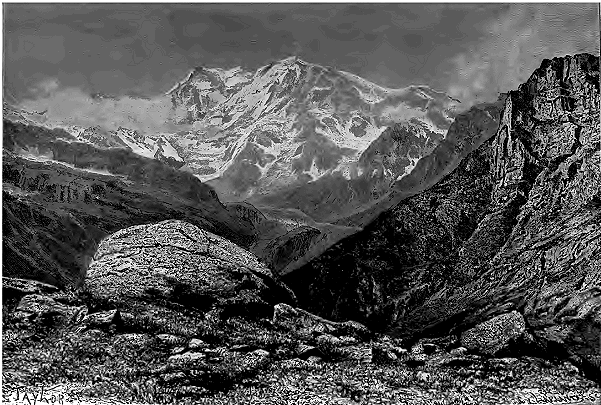 Le système des Alpes, qui doit probablement son vieux nom celtique à la blancheur de ses hautes cimes neigeuses, se développe en une immense courbe de plus de 1,000 kilomètres, des rivages de la Méditerranée au bassin du Danube. Il se compose, en réalité, d'une trentaine de massifs formant autant de groupes géologiques distincts, mais reliés les uns aux autres par des seuils très-élevés; ses roches, qu'elles soient de granit, d'ardoise, de grès ou de calcaires, se maintiennent au-dessus des plaines basses en un rempart continu. Dans les âges antérieurs, les Alpes furent beaucoup plus hautes, ainsi qu'a permis de le constater l'étude des éboulis et des strates à demi détruites par les agents naturels; mais, tout dégradées qu'elles soient, elles élèvent encore des centaines de cimes dans la région des neiges persistantes, et de grands fleuves de glaces s'épanchent de toutes ses hautes crêtes dans les vallées supérieures. Des campagnes du Piémont et de la Lombardie, les glaciers et les névés apparaissent comme un diadème étincelant enroulé sur le sommet des monts.