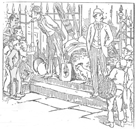 Twenty minutes later, three figures, followed by a shamed-looking dog, might have been seen creeping stealthily from the boat-house at the “Swan” towards the railway station, dressed in the following neither neat nor gaudy costume: