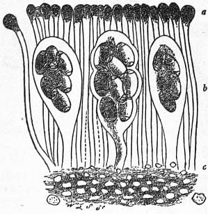LETTUCE, known botanically as Lactuca sativa (nat. ord. Compositae), a hardy annual, highly esteemed as a salad plant. The London market-gardeners make preparation for the first main crop of Cos lettuces in the open ground early in August, a frame being set on a shallow hotbed, and, the stimulus of heat not being required, this is allowed to subside till the first week in October, when the soil, consisting of leaf-mould mixed with a little sand, is put on 6 or 7 in. thick, so that the surface is within 4½ in. of the sashes. The best time for sowing is found to be about the 11th of October, one of the best varieties being Lobjoits Green Cos. When the seeds begin to germinate the sashes are drawn quite off in favourable weather during the day, and put on, but tilted, at night in wet weather. Very little watering is required, and the aim should be to keep the plants gently moving till the days begin to lengthen. In January a more active growth is encouraged, and in mild winters a considerable extent of the planting out is done, but in private gardens the preferable time would be February. The ground should be light and rich, and well manured below, and the plants put out at 1 ft. apart each way with the dibble. Frequent stirring of the ground with the hoe greatly encourages the growth of the plants. A second sowing should be made about the 5th of November, and a third in frames about the end of January or beginning of February. In March a sowing may be made in some warm situation out of doors; successional sowings may be made in the open border about every third or fourth week till August, about the middle of which month a crop of Brown Cos, Hardy Hammersmith or Hardy White Cos should be sown, the latter being the most reliable in a severe winter. These plants may be put out early in October on the sides of ridges facing the south or at the front of a south wall, beyond the reach of drops from the copings, being planted 6 or 8 in. apart. Young lettuce plants should be thinned out in the seed-beds before they crowd or draw each other, and transplanted as soon as possible after two or three leaves are formed. Some cultivators prefer that the summer crops should not be transplanted, but sown where they are to stand, the plants being merely thinned out; but transplanting checks the running to seed, and makes the most of the ground.