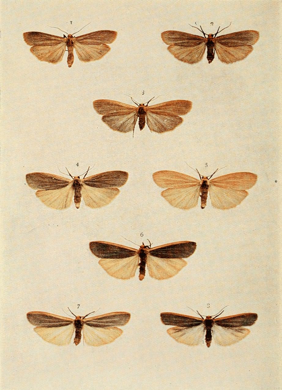 To Mr. Horace Knight he is very greatly obliged for the care bestowed upon the drawings of ova, larvæ, and pupæ, the bulk of which were made from living examples; also the coloured drawings for Plates 1, 45, 63, 68, 73, 75, 80, 84, 90, 108, 119, 123, 140, 146, 149, and 153. The only figures copied from any previous publication are those of the caterpillars of S. fuliginosa, D. sanio, D. pulchella, A. corticea, A. strigula, N. plecta, and N. augur (Wilson's "Larvæ Brit. Lep."); and among the moths, the varieties of A. caia; D. mendica (4 Yorks.), Trans. Ent. Soc. Lond., 1889; S. walkeri, Curtis, and N. subrosea, Stephens.