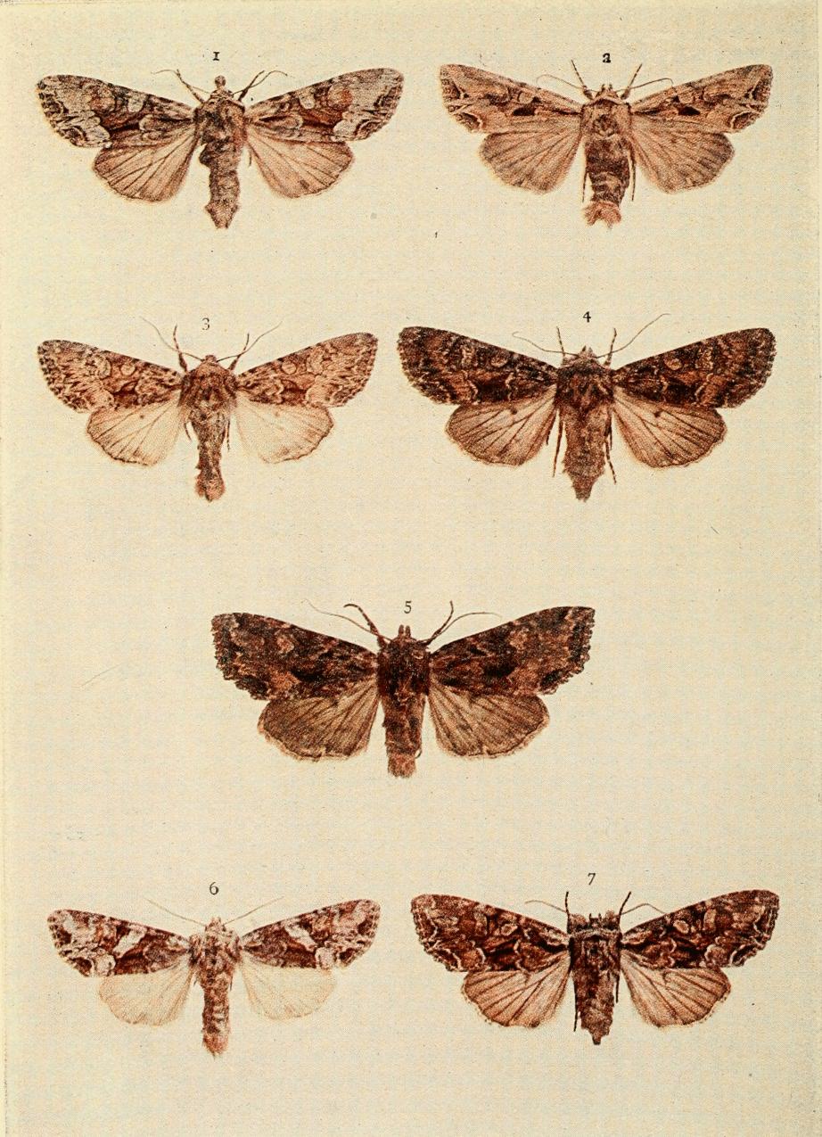 Except that there is sometimes an absence of rosy tinge on the fore wings, and that the brownish markings may be lighter or darker, this species does not depart very greatly from the typical form shown on Plate 7.