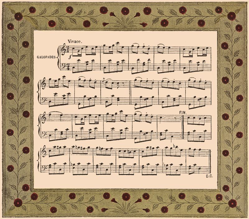 Pendant la première reprise, on danse en rond;—à la seconde reprise, on fait la chaîne anglaise;—on la prolonge autant qu'on veut en répétant la reprise.
