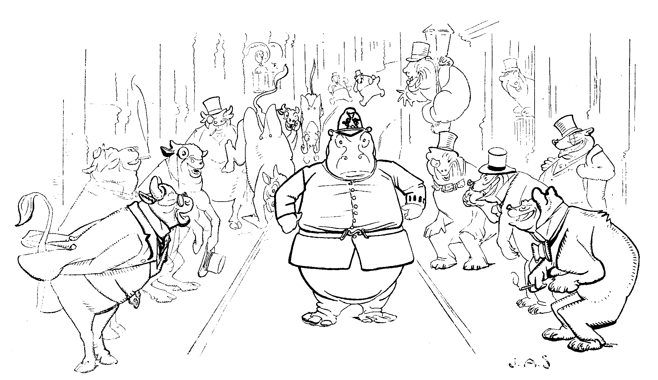 No. IX.—Awkward position of Hippoliceman among the wild Bulls and Bears in Throgmorton Street.