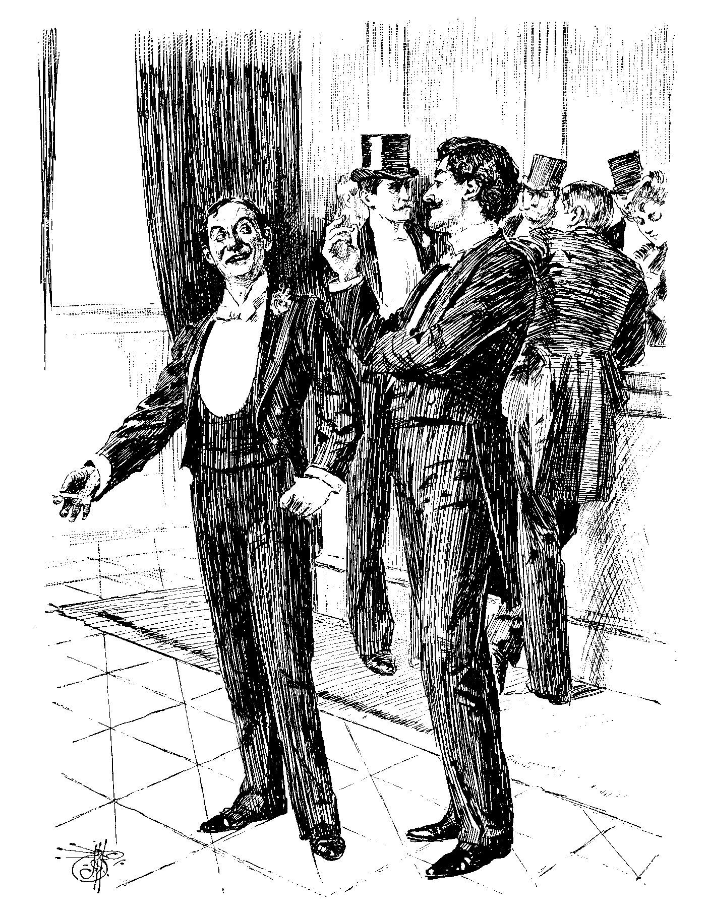 Over-enthusiastic Person (speaking confidentially of his absent Friend to the young Lady to whom absent friend is going to propose). Everybody speaks in his praise. He is an exceptionally good man.