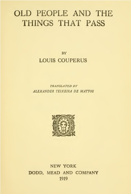 Mamma pretended to be absorbed in her French novel, but, as soon as Lot had left the room, she put down the book and looked round, vaguely, with a look of helplessness in her blue eyes. She did not move when the maid brought in the tea-tray and kettle; she sat staring before her, across her book. The water sang its bubbling song; outside the windows, after the last summer heat, the first cold wind blew with its wonted plaint. Ottilie felt herself abandoned: oh, how little of everything remained! There she was now, there she was, the old, grey-haired woman! What was there left of her life? And yet, strange to say, her three husbands were all three alive: Lot had been lately to Brussels with Elly, to see his father; Trevelley was spending a life of pleasure in London: when all was said, she had liked him the best. Her three English children lived in England, felt more English than Dutch; Ottilie was leading her curious, unconventional life at Nice: the whole family cried scandal about it; and Lot she was now about to lose. He had always stayed with her so nicely, though he went abroad pretty frequently; and he had hardly any friends at the Hague and never went to the Witte.[2] Now he was going to be married; he was no longer young, for a young man; he must be thirty-eight, surely? To occupy herself a little now, beside her lonely tea-tray and bubbling water, she began to count her children's ages on her tiny fingers. Ottilie, Lot's sister, her eldest, forty-one: heavens, how old she was growing! The English ones, as she always called them—"my three English children"—Mary, thirty-five; John, thirty-two; even her handsome Hugh was thirty: heavens above, how old they were growing! And, once she was busy calculating ages, to amuse herself, she reckoned out that old Mamma would now soon be—let's see—yes, she would be ninety-seven. Old Mr. Takma, Elly's grandpapa, was only a year or two younger; and, when she thought of him, Ottilie reflected that it was very strange that Mr. Takma had always been so nice to her, as though it were really true what people used to whisper, formerly, when people still interested themselves in the family. So curious, those two old people: they saw each other almost every day; for Papa Takma was hale and still went out often, always walking the short distance from the Mauritskade to the Nassaulaan and crossing the razor-back bridge with rare vigour. Yes ... and then Sister Thérèse, in Paris, eight years older than herself, must be sixty-eight; and the brothers: Daan, in India,[3] seventy; Harold, seventy-three; Anton, seventy-five; while Stefanie, the only child of Mamma's first marriage and the only De Laders, was getting on for seventy-seven. She, Ottilie, the youngest, felt that all those others were very old; and yet she was old too: she was sixty. It was all a matter of comparison, growing old, different ages; but she had always felt it so: that she, the youngest, was comparatively young and always remained younger than the others, than all the others. She had to laugh, secretly, when Stefanie kept on saying: