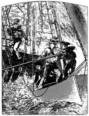"Then haul down the jib, Joe, just as quick as possible, and the minute it's down, hang on to the mast as tight as you can. Heave away that drag."