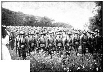 Since the losses had not entirely been made good by drafts, the strength of Lord Roberts' army, as it stood ready to strike on February 10, may be estimated at 26,000 infantry, 4,000 cavalry, 3,500 mounted infantry, and about 120 guns, including the 6-inch howitzers of the siege train. It was by far the largest and the best organised wholly British force that had ever taken the field. Australians, Canadians, and Ceylon planters were among the mounted infantry; Afrikanders, among the Cape volunteers; but the great majority came from within the limits of the British Isles.