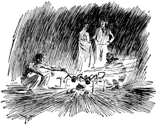 At another time he waded into a crowd of Cholos in the interior and took from them their machetes and shot-guns, acting on his own initiative, because he knew that in that far interior laborers were too precious to waste by their own fighting. From our tent we heard two shots and the rising yells of a small riot and then, before there was time to grab a gun or gather the few white men, the figure of Agamemnon staggered up the crest of the river bank with his arms full of the commandeered machetes and trade-guns.