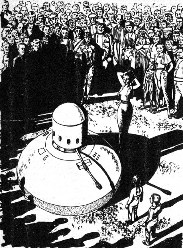 So Robie moved on until he reached the curb. The variation in level was instantly sensed by his under-scanners. He stopped. His head began to swivel. The crowd watched in eager silence. This was Robie's best trick.