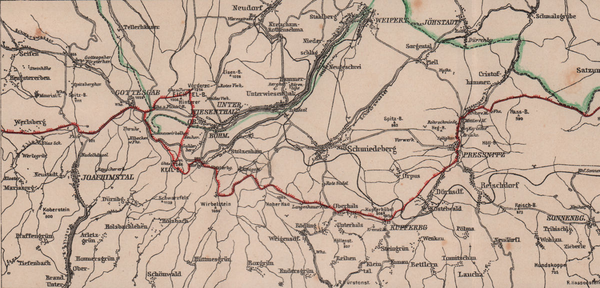 [1] Empfehlenswert: Berlet, Wegweiser durch das sächs.-böhm. Erzgebirge. 11. Auflage 1907. Verlag der Graser'schen Buchhandlung in Annaberg.
