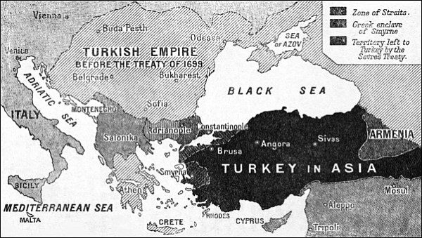 But since the time when this was written the Turkish mind has changed. The Turks have set to work to learn languages, especially French. A large part of the younger generation concern themselves with what takes place in the West, and this transformation, which the Greeks and other Europeans looked upon as endangering their situation in Turkey, may be one of the factors of the present conflict.