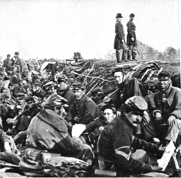 Not everyone was shooting all the time. Often only handpicked sharpshooters traded shots from the trenches and tried to pick off each other’s artillerymen. An artist caught these men of the Federal XVIII Corps at their daily, deadly business.