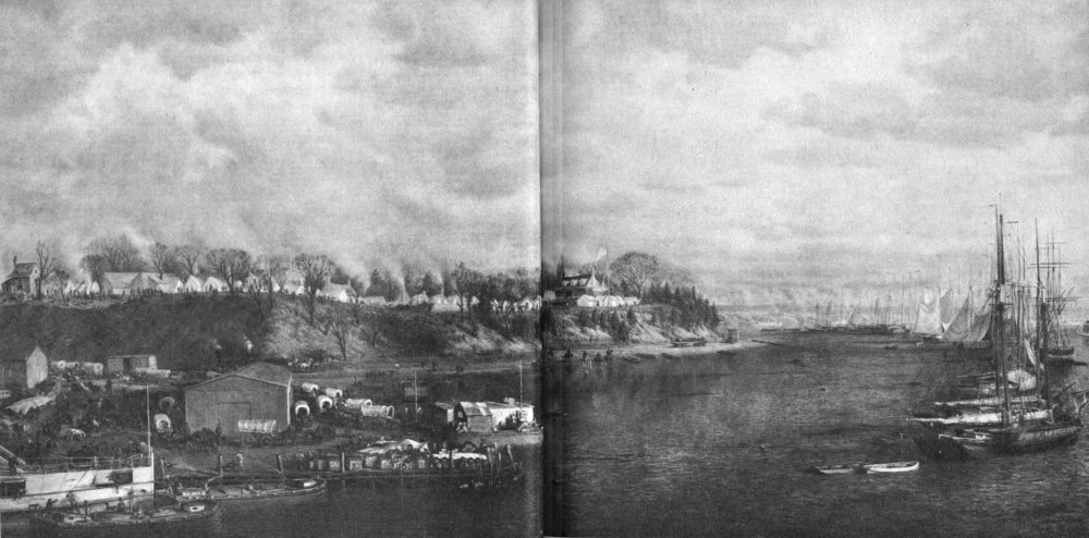 1-4. Scenes at City Point, Va., showing some of the supplies and munitions destined for Grant’s army. An Episcopal bishop from Atlanta, visiting Grant at City Point, was awed by the abundance of military stores that he saw—“not merely profusion, but extravagance; wagons, tents, artillery, ad libitum. Soldiers provided with everything.”
