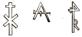[36] From the ‘Archæologia,’ vol. 32, I learn that ‘the seal of Bartholomew Elys, of Great Yarmouth, 17 Rich. II., is remarkable as giving the family arms with the substitution of his merchant’s mark in place of the cinqfoil in base.’ Mr. Waller says that at Standon, in Herts, is the mark of John Feld, alderman of London 1474; but his son, on the same brass, an esquire in armour, has his shield of arms.