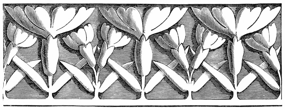 In the introduction of vegetable growth into any ornamental composition, we must be careful to remember that what is wanted is not so much a direct imitation of nature, which after all can only be faulty at the best, as a due adaptation of the natural form to the purpose of our design—a recognition of the impossibility of a close copy of nature, together with a feeling of its undesirableness even if it could be accomplished. Our{8} representations must therefore be more or less conventional: in a flower-painting we naturally expect to see a direct transcript of nature, while in decorative art a direct transcript offends us.