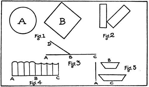 Problems in mental arithmetic, if visualized, are of great value in that the correct solving of them requires vivid and separate images. Work for fullness of detail, the picture frame suggested on page 74 offers an excellent opportunity to do this while exercising the constructive imagination. While fixing the attention upon the square you keep the element of change going by use of the imagination in picture making. Put into this picture all the detail possible, add everything you can think of and then strive to create still more.