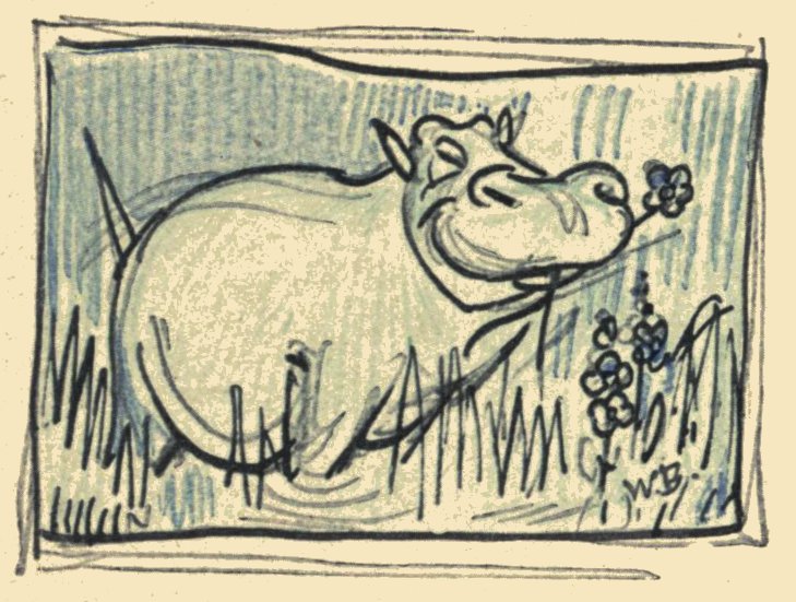 Das Nilpferd pflückt sich oft gemütlich |
