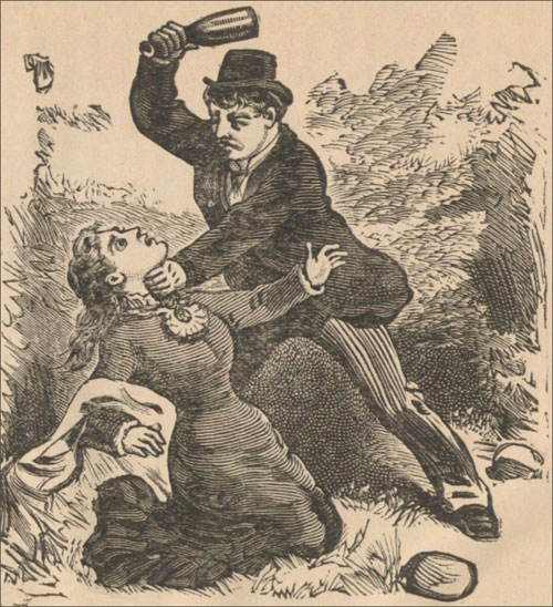 The woman did most of the talking, and seemed to be in excellent spirits. She exhibited a bulky pocketbook, and asked Mr. Mabon how much his charge was. He replied that she might pay him whatever she thought proper. As she had no small bills she went out to get change, and came back presently with the money and a bottle of Rhine wine, which she offered to the clergyman. When he refused it she tried to persuade him to take a drink, but he declined, and, after a few more words, the strange couple quitted the parsonage. Mr. Mabon could not recollect anything about the dress of either of the parties, but his colored servant girl told the detectives that she had particularly noticed the man as he was striding up and down the garden, and acting as if his mind was troubled. She said he was stout, with a full face and dark moustache, and wore a high, flat-topped Derby hat.