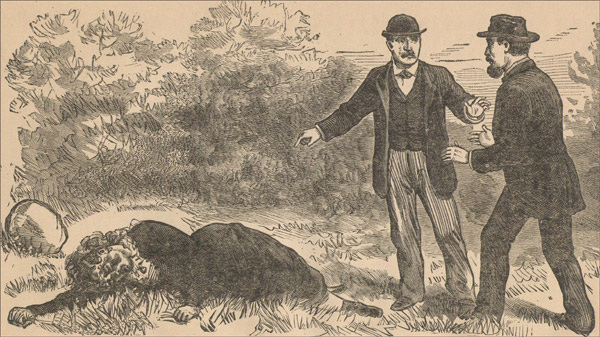 On Friday morning, the 13th of last May, a German, whose purpose was to gather green leaves to sell to florists in N. Y. city, entered the path leading from Bergen avenue, in the district known as Bull’s Ferry, north of Weehawken. He had followed it eastward toward the river about 100 feet, and had turned aside to the right about twenty feet, when he was appalled by almost stepping upon the dead body of a woman. He hurried away to inform the police.