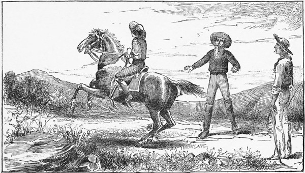On a nail opposite the door hung a rubber blanket with a hole in the center, so that it could be worn over one’s shoulders like a cloak; from another was suspended a huge powder-horn; and on a third hung a rusty carving-knife, which one of Guy’s companions had sold to him with the assurance that it was a hunting-knife. Then there was a portion of an old harpoon which Guy said was a spear-head, a pair of well-worn top-boots, an old horse-blanket and a clothes-line with an iron ring fastened to one end of it. This last Guy called a lasso. He spent many an hour in practicing with it, whirling it around his head and trying to throw the running noose over a stake he had planted in the yard.