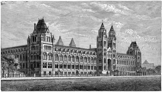 In January, 1864, the Commissioners of Her Majesty’s Works issued an advertisement for designs for a Natural History Museum and a Patent Museum, to be erected on part of the land thus acquired; a plan which had been prepared by Mr. Hunt in September, 1862, from Sir Richard Owen’s suggestions, being proposed as a model in respect to dimensions and internal arrangement.