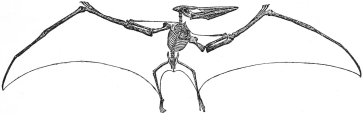 Fig. 53.—A Giant Pterodactyle (Pteranodon occidentalis) from the Cretaceous of Kansas. (Original span about 18 feet.) Compare the wing, which is supported by the outermost finger, with that of the Bat in Fig. 8.