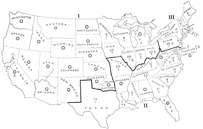 7. In discussing coeducation I shall, therefore, disregard the divisions into north Atlantic, south Atlantic, north central, south central and western, employed by the U. S. census and the U. S. bureau of education. The New England, middle and southern states are all, of course, eastern, and, with the exception of Vermont, West Virginia, Kentucky, Tennessee and Missouri, are all seaboard states, Pennsylvania being counted as a seaboard state on account of its close river connection with the sea. It will be noted that the inland southern states are rather western than eastern in their characteristics. The northern middle states belong on the whole by their sympathies to New England, the southern middle to the southern states. Missouri, having been a slave state and settled largely by southerners, is still southern in feeling. The District of Columbia also may conveniently be counted with the southern states.
