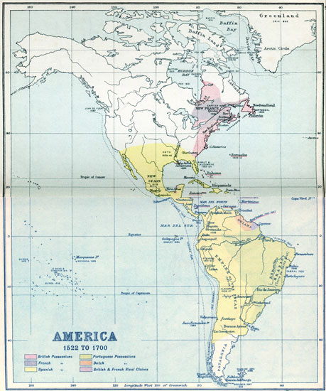When General Hamilton spoke in the Federalist over a century ago of "an empire, in many respects the most interesting in the world," meaning the United States of America, he did not, he could not, foresee the vast growth of his country and its northern and southern neighbours which this book portrays. The volume is the third in a series of small atlases, meant to cover in turn the whole globe, and to do it in a way to knit up geographical and historical knowledge with the facts of commerce and the literary record of each land or region. One chief purpose of these maps is to trace clearly the development of the United States, beginning with "the most remarquable parts" of the New England of the Pilgrim Fathers, described by Captain John Smith in 1614, and not forgetting the territories of the old American-Indian nations. Some inkling too is given in facsimile of the early charts, views, and maps by the explorers and cartographers who made a survey of the first settlements. For example, we have an old map of Guiana invaluable as a Sir Walter Raleigh record, giving the mouths of the Oronoke, or Orinoco, where his men tugged against the stream, and stretching southward to the Amazon itself, and we get from the map of Peru at the period of the Conquest a clear idea of the country in the time of Pizarro.