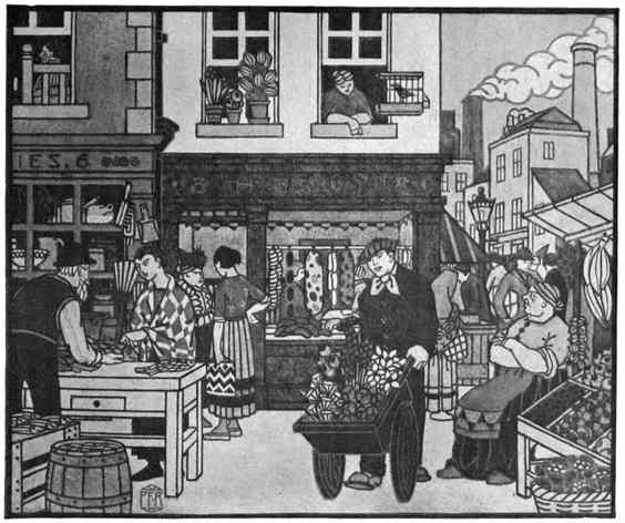 Also one should readily cede to the fancy that is bred by a beautiful place name. It is true that, as a rule, the most attractive names lead to the least attractive places, but on the way one touches singularity often, and beauty sometimes. My Baedeker has always been Kelly’s Directory; that is one of the books I should like to find in my restricted library if I were wrecked on a desert island. For, sitting under my bread-fruit tree, warm in my garment of yakskin, and smoking an earthen pipe of dried I don’t know what leaf, Kelly’s Directory would bring up dreams, dreams such as these: Seven Sisters’ Road, Satchwell Rents, Beer Lane, and Whetstone Park. All those dreams have come true, and thus a little of my fervour has been abated by their materialisation; by the discovery of Seven Sisters’ Road as gray, refuse-strewn, rich9 in Victorian goodness and in modern slum; of Satchwell Rents as a dusty affluent into Bethnal Green Road, shuttered, and locked, and suspicious. Whetstone Park, of course, is not at Whetstone, but just off New Oxford Street, and there is no park there. But still, those names, like Orme Square, that secludes itself from the Bayswater Road behind its column and its defiant eagle, like Cumberland Market, Hanoverian, naked, whose many iron posts await cattle that never come, contain the seed of romance because they induce quest. And so I will not be discouraged yet, but soon must discover what stones have wrought Jedburgh Street and Parsifal Road.