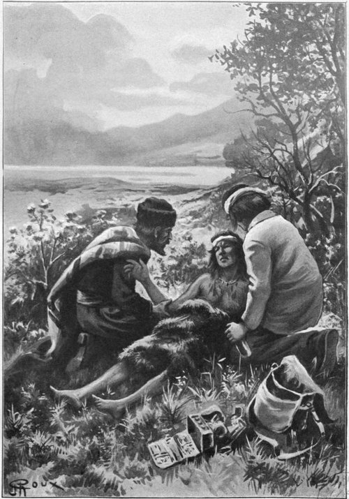 Lorsque les trois personnages furent réunis, les deux hommes échangèrent quelques mots dans ce langage indigène caractérisé par une aspiration courte à la moitié de la plupart des mots, puis tous se dirigèrent vers le blessé, qui gisait sur le sol près du jaguar abattu.