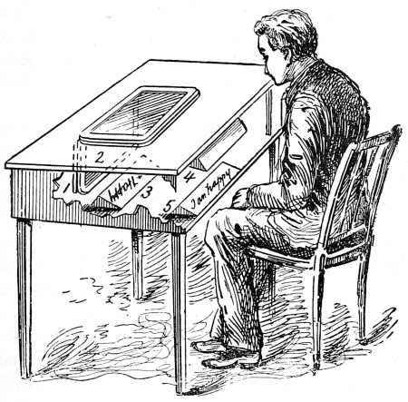 Of course, it is this slate and one of the prepared ones that are afterward used. There is little likelihood of any one taking notice of there being one more slate in the pile.
