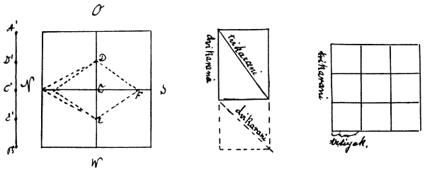 Handel und Verwaltung zwangen zur Ausbildung der Rechenkunst. Der Handel wurde schon vor unvordenklicher Zeit von Staats wegen getrieben; grosse Handelsexpeditionen nach Punt (Somaliküste) und Kusch (Nubien) ausgesandt. Die Verwaltung war bis aufs kleinste organisiert. Ein Heer von Hofbeamten, ein Heer von Beamten der Lehnsbarone, sie ist in China und in Deutschland nicht bureaukratischer gewesen. Wir haben genug Denkmäler von dem Hochmut der Beamten und[S. XVI] dem selbstverständlich noch grösseren ihrer Schreiber. Die Feldmessung aber und die Baukunst entwickelten die Geometrie. Die Baukunst, die jene Denkmäler geschaffen, vor denen der grosse Napoleon seinen Soldaten zurief: Songez que du haut de ces monuments quarante siècles vous contemplent; und die gewaltigen Kanäle, Stau- und Schleusenwerke und Nildämme, die sich bis heute erhalten haben. Die Feldmessung aber musste in hohem Ansehen stehen bei dem komplizierten auf den Landbesitz gegründeten Steuersystem und dem hohen Werte des schmalen Kulturstreifens längs des Niles. Herodot, dem wir die erste Kunde von Ägypten verdanken, berichtet, dass Sesostris — in dieser sagenhaften Figur hat sich die Erinnerung an 2 Pharaonen, den mächtigen Pharao Sen-wos ret der XII. Dynastie etwa um 2200 und Ramses II erhalten — das Land in Quadrate geteilt und wenn der Nil in seiner Überschwemmung Land ab- oder angespült hatte, Nachmessungen der staatlichen Feldmesser stattfanden, zum Zwecke der richtigen Steuerveranlagung. Daraus ist dann schliesslich bei Strabo die Erzählung geworden, dass das ganze Land, weil der Nil die Grenzzeichen jährlich fortgerissen hätte, jährlich neu vermessen wurde.