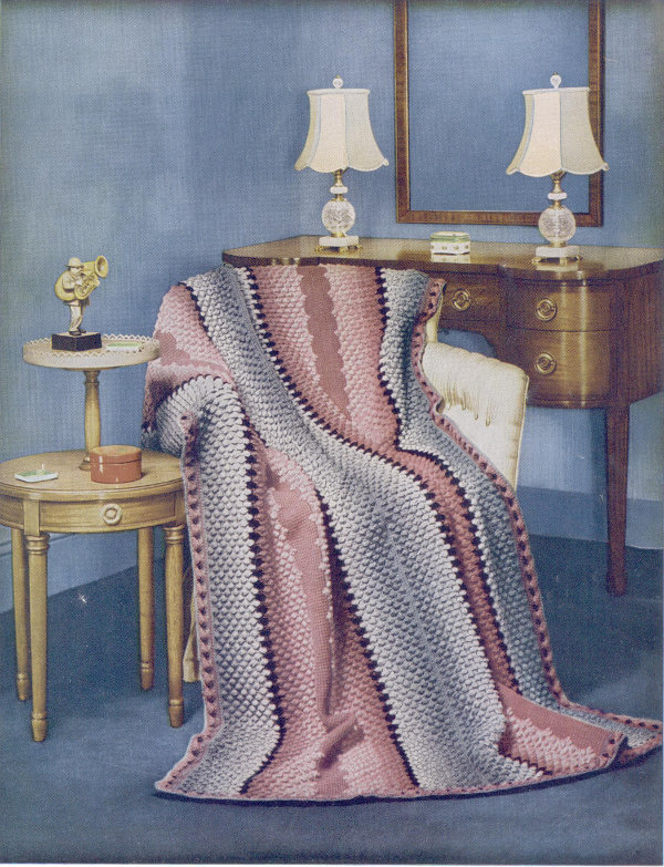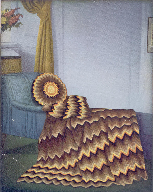 RIPPLE AFGHAN WITH MATCHING PILLOW No. 4612