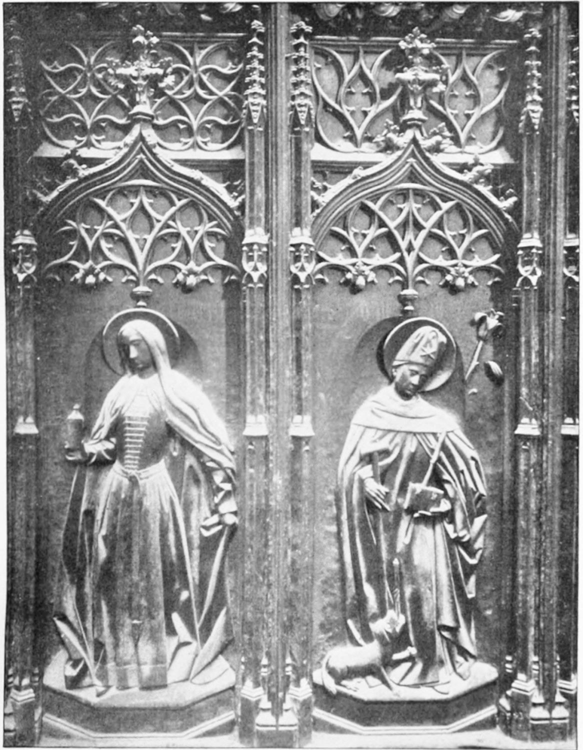 The central shaft of the middle door is disfigured with a dressed-up image of the Virgin enclosed in glass. The sculpture of the tympanum is spirited and elaborate. In a composition depicting the Last Judgment devils are seen stirring their fires and plunging the reprobate into seething cauldrons. On the side of the blessed a young man extracts cheering music from what is perhaps a harmonium. The attitudes of the just express the liveliest satisfaction, whereas a crowned personage, striding boldly into Paradise, is met and warned off by a celestial Janitor. The naïve and fantastically horrible are curiously blended in this skilful work. The southern doorway is the least interesting of the three; the subjects of the reliefs are the death and coronation of the Virgin.