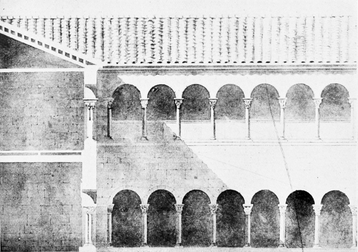 The modern church of San Marcelo, which{31} gives its name to the square, was founded by Ramiro I. in the ninth century, and was liberally endowed in after years by Alfonso VI. Marcelus is a reputed local martyr, a Roman legionary who refused to adore the divinity of Cæsar, and was beheaded, having blessed his executioners. By another account the martyrdom took place at Tangier, whence, at all events, the saint’s relics were brought here in 1493. The tympanum of a thirteenth-century doorway in the wall at the back of the church is all that remains of the original fabric. A deserted esplanade beyond the walls, to the south-west of the city, marks the site of the once famous shrine of San Claudio, erected first in Constantine’s day on the place of martyrdom of Claudius, Lupercius, and Victoricus. Al Mansûr is said to have been struck with sudden panic when about to attack this church. Successive fanes of great magnificence rose over the spot, the last being destroyed by fire in the sixteenth century.