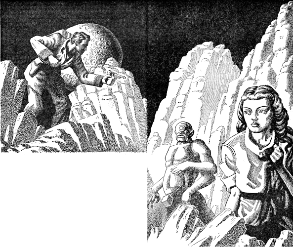 Kimball Trent saw the Gharrian before the girl, and horror was in his eyes. He lifted his rifle automatically again, and hell raved for a brief second as he shot a full clip at the beast. The Gharrian did not turn, apparently did not notice the attack.