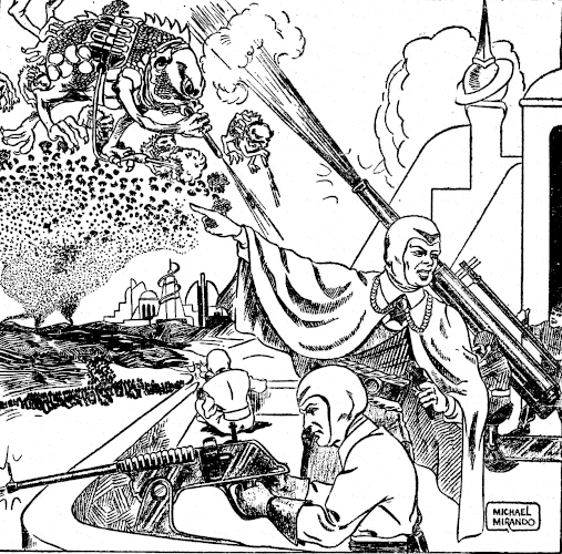 On the approaches to Outpost 53, sweating men labored on the caissons of twelve batteries of Amorg twenty-fives, pouring atomic destruction into a solidly packed mass of Venusians advancing through the wire entanglements.