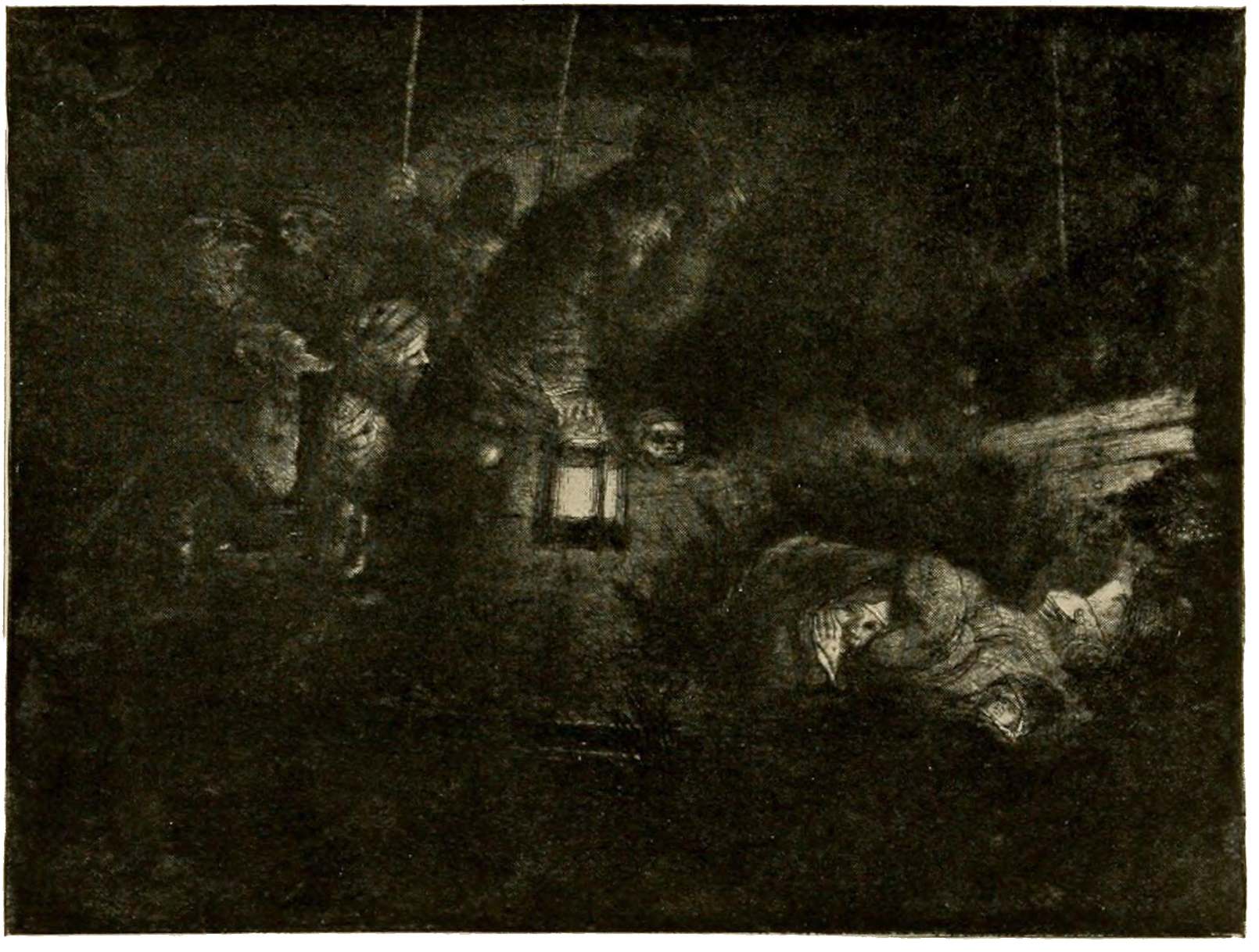 Shortly after the advent of wood-engraving, lithography appears, and offers the tempting inducement of utmost technical simplicity to the artist. The drawing is made on the stone or on transfer paper with lithographic ink or crayon; the transferring and preparation of the stone (or metal plate) with acid, gum, and water is left to the printer. No wonder that the process found wide favor and that it was put to a great variety of uses: innumerable portraits, endless series of views, costume plates, music titles, reproductions of pictures. In the hands of artists the process proves its merit by such129 prints as “Christ Disputing with the Doctors,” by Adolph von Menzel, that untiring pioneer of realism in Germany. The scene with its masterly characterization is astonishing in the play of expression on each face and figure. In France both processes burst into profuse bloom with the awakening of romanticism. The thirties and forties bring a wealth of notable lithographic productions, the work of Delacroix, Isabey, Géricault, Decamps, Diaz, and a host of other artists. Gavarni uses this easy medium to portray in thousands of sketches the life of all Paris. Daumier portrays the frailties of humanity in his cartoons for “Charivari” and “La Caricature,” or else wields his crayon as a formidable political weapon; in the print selected for illustration he shows us Louis Philippe at the death-bed of a political offender “who can now be released, being no longer dangerous.”
