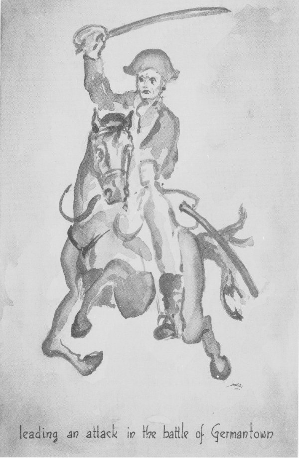 On Feb. 21, 1777, he was appointed to the rank of brigadier-general and was called, on Apr. 12, to join Washington at Morristown, N. J., and to take command of the Pennsylvania line. After a season of training and drill his division took an active part in resisting the British in their campaign against Philadelphia. In the battle of Brandywine on Sept. 11, 1777, he occupied the center of the defense opposing the British at their main point of crossing. He was obliged to retreat when the American right was flanked by Cornwallis, who crossed the creek higher up. When Washington then withdrew to the north of the Schuylkill, he sent Wayne to circle around the rear of the British and to surprise and destroy their baggage train. Wayne, however, was himself surprised and, in the battle of Paoli, Sept. 20, received a drubbing. Being accused of negligence in this action, he demanded a court martial and was acquitted. Rejoining Washington, he played a conspicuous part in the battle of Germantown, on Oct. 4, leading a spirited and almost victorious attack, but was forced back, when difficulties in the rear turned the victory into confusion and defeat. He wintered with Washington at Valley Forge and led the advance attack against the British at the battle of Monmouth on June 28, 1788.