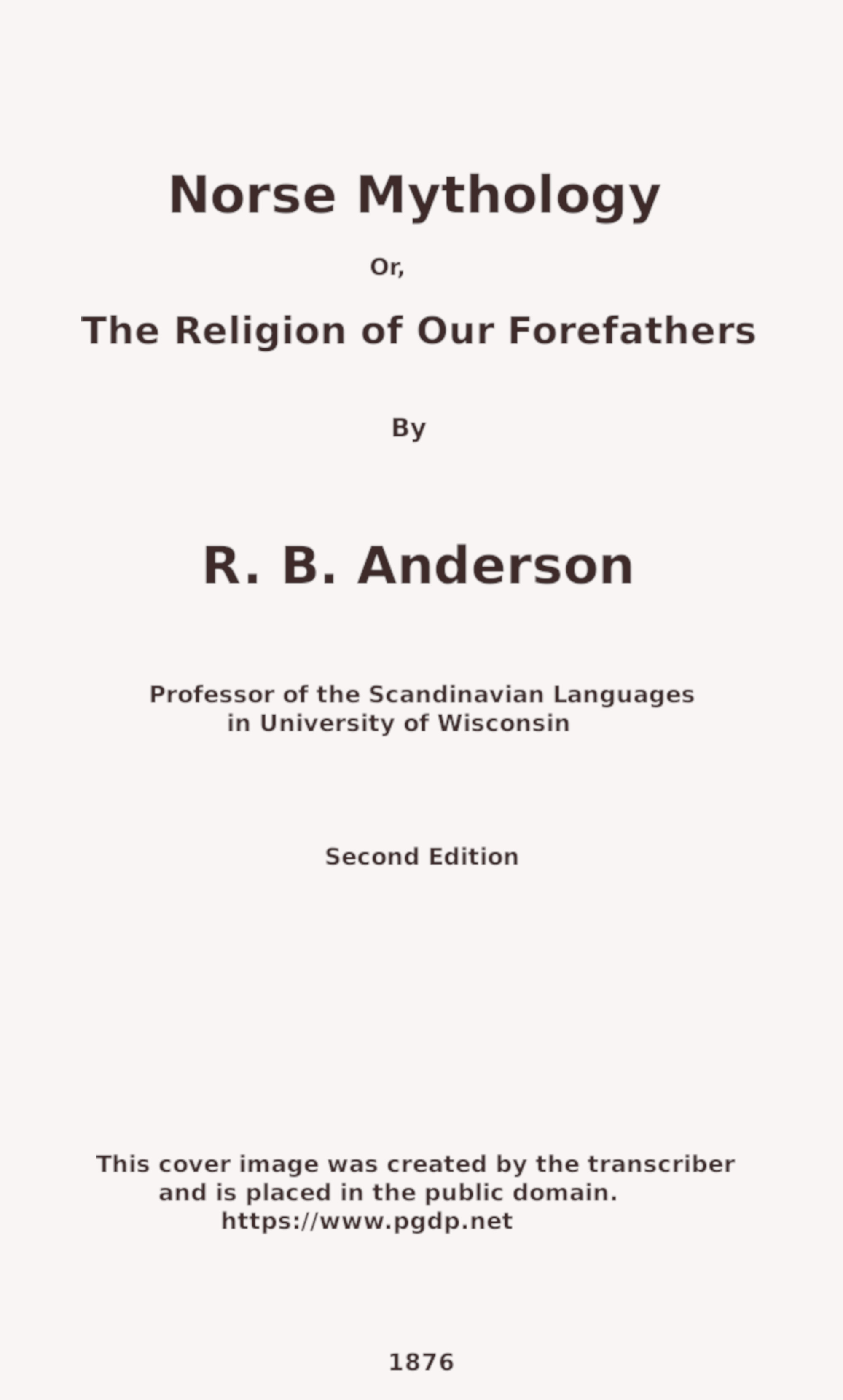 Although many of the ideas set forth in this work may seem new to American readers, yet they are by no means wholly original. Many of them have for many years been successfully advocated in Scandinavian countries, and to some extent, also, in Germany and England. Our aim has not at present been so much to make original investigations, as—that which is far more needed and to the purpose—to give the fruits of the labors performed in the North, and call the attention of the American public earnestly to the wealth stored up in the Eddas and Sagas of Iceland. No one can doubt the correctness 11of our position in this matter, when he reflects that we now drawing near the close of the nineteenth century, and have not yet had a complete Norse mythology in the English language, while the number of Greek and Roman mythologies is legion. Bayard Taylor said to us, recently, that the Scandinavian languages, in view of their rich literature, in view of the light which this literature throws upon early English history, and in view of the importance of Icelandic in a successful study of English and Anglo-Saxon, ought to be taught in every college in Vinland; and that is the very pith of what we have to say in this preface.