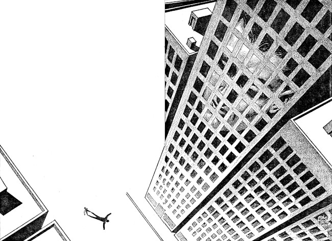 He laughed. It was a cracked and shattered sound. He said, "Listen. Out there are the typists and writers and executives. Just listen to them. Just listen to the noise...." His voice slid upward in a strangled scream. He heard no noise.